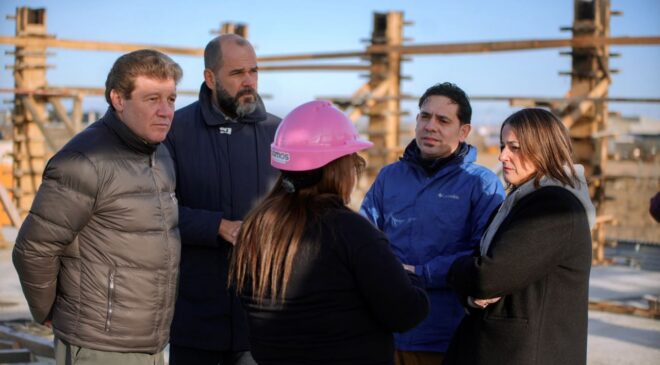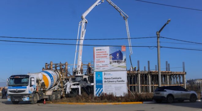El Gobernador de Tierra del Fuego AIAS, Gustavo Melella, recorrió la obra de la Comisaría de Género y Familia en Río Grande donde avanzan los trabajos de hormigonado del edificio. Estuvo acompañado del Ministro Jefe de Gabinete, Agustín Tita, de la Ministra de Obras y Servicios Públicos, Gabriela Castillo y del Secretario de Representación Política, Federico Giménez. Participaron también el Viceministro de Coordinación de Gabinete, Jorge Canals, el Legislador Federico Greve y los Concejales de Río Grande Federico Runín y Lucía Rossi.