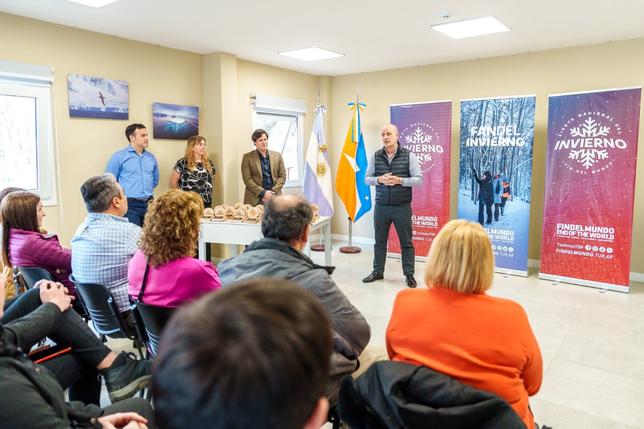 La ceremonia la encabezó la vicegobernadora Mónica Urquiza junto al presidente del Instituto Fueguino de Turismo, Dante Querciali. Hicieron entrega de distinciones a las organizaciones que acompañaron la ultima edición de la Fiesta Nacional del Invierno.