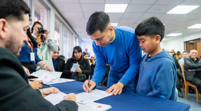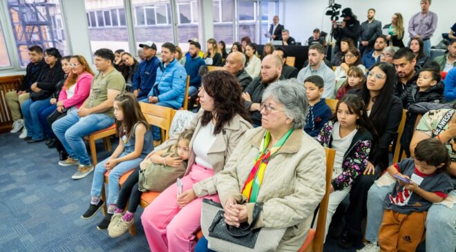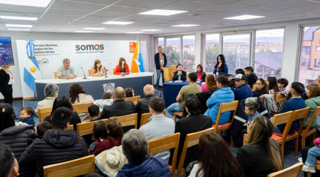 El evento tuvo lugar en la Casa de Gobierno en la ciudad de Ushuaia y fue encabezado por la presidenta del Instituto Provincial de Vivienda y Hábitat (IPVyH), Laura Montes, acompañada de la Ministra de Obras y Servicios Públicos, Gabriela Castillo.