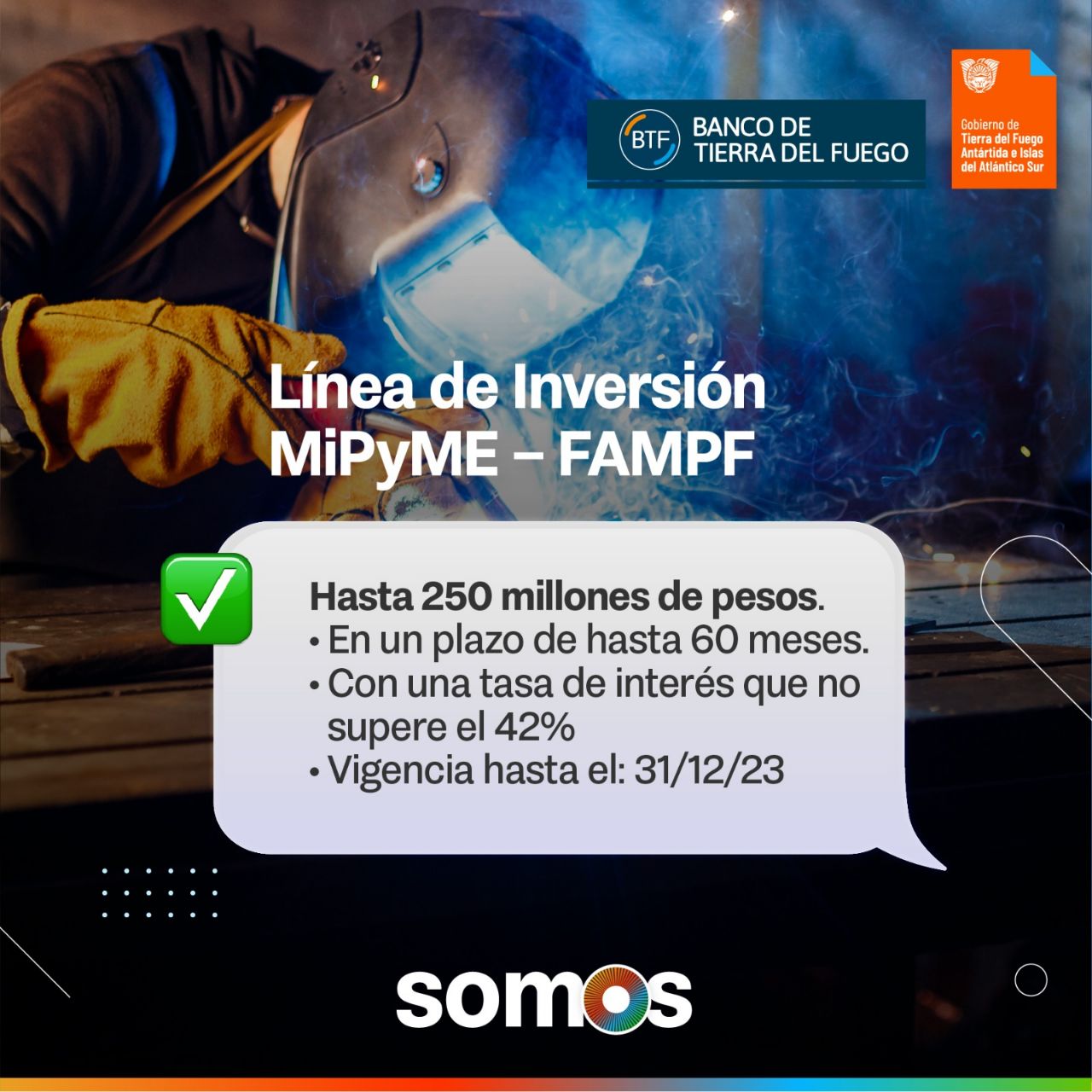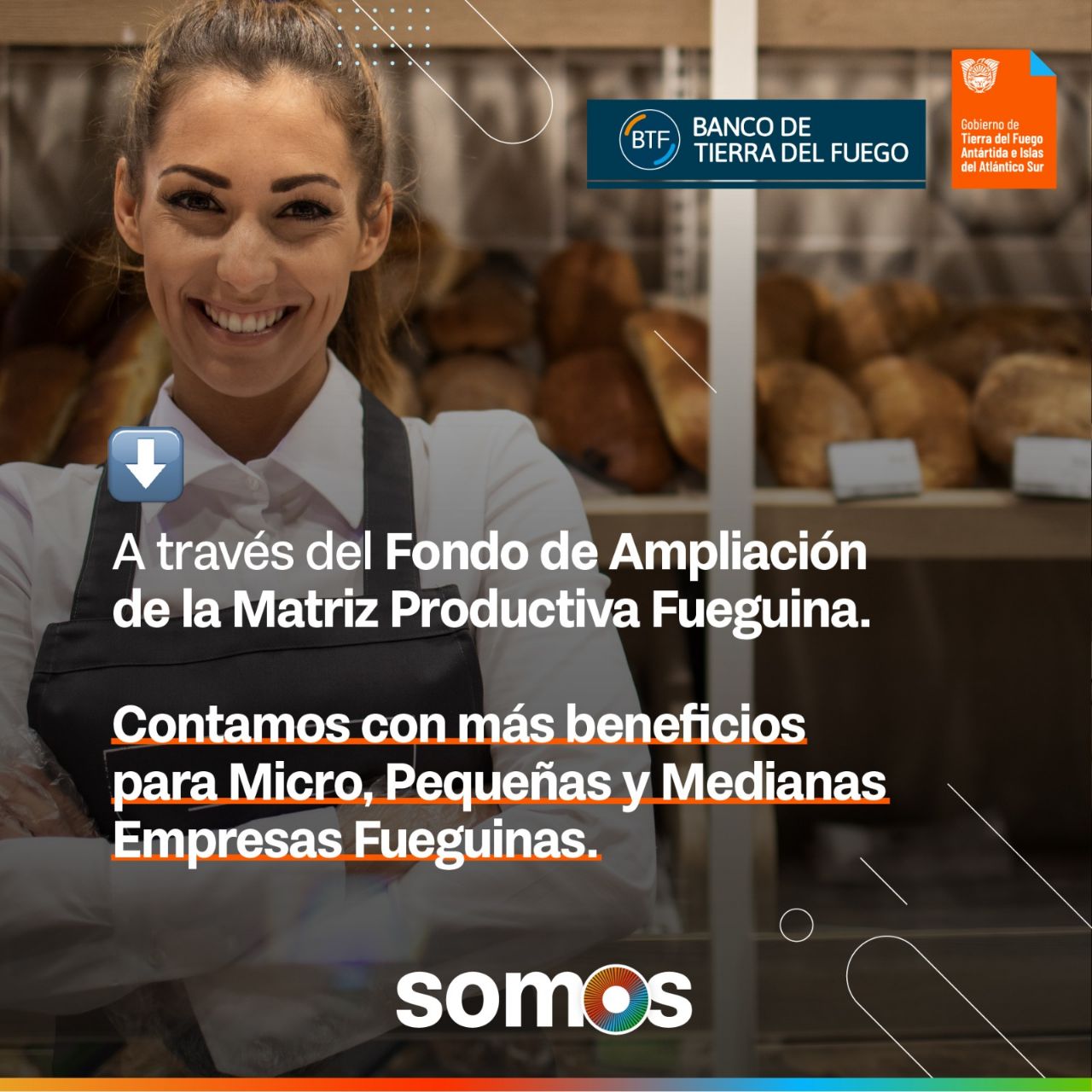Lo consideró el Presidente del Banco de Tierra del Fuego, respecto a las Línea FAMP – Fueguina. Los créditos están destinados a Micro, Pequeñas y Medianas Empresas; productoras de bienes; de servicios y vinculadas al comercio y turismo, que desarrollen sus actividades en Tierra del Fuego.