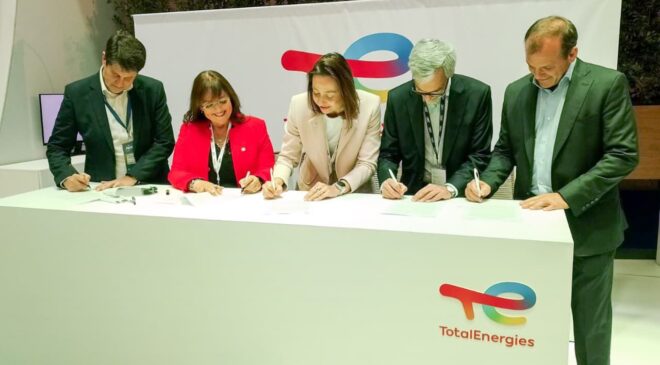La rúbrica tuvo lugar en el stand de Total Energies, durante la Expo 2025 Argentina Oil & Gas en el predio de la Rural, en la ciudad de Buenos Aires.