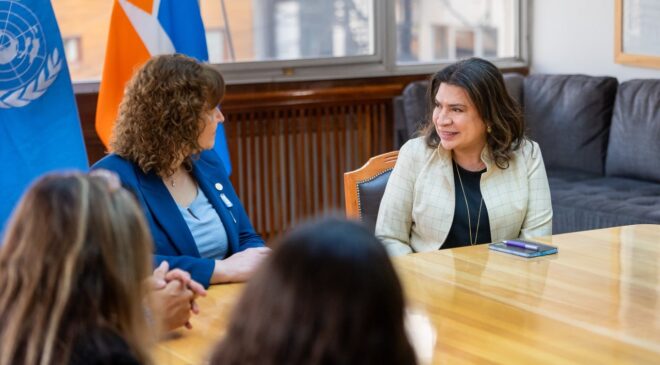 Del encuentro también participó el equipo del Sistema de Naciones Unidas, la Secretaría de Asuntos Internacionales, Constanza Renzone, y la Secretaria de Política para las Juventudes, Ivana Olariaga.