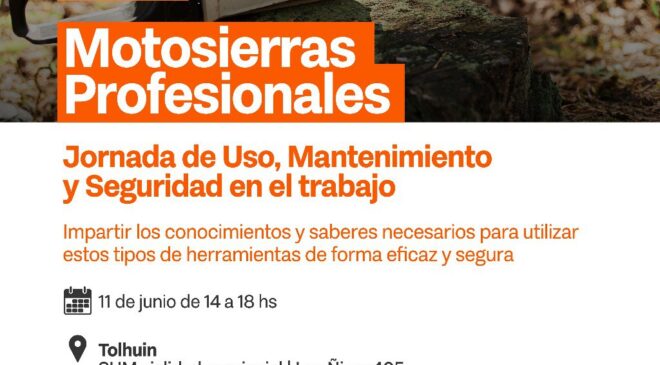 El Gobierno de Tierra del Fuego AIAS, a través de la Secretaría de Empleo y Formación Laboral del Ministerio de Trabajo y Empleo llevará adelante en Tolhuin una jornada sobre el uso, mantenimiento y seguridad de motosierras profesionales.