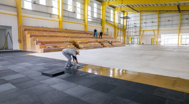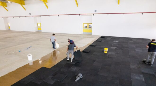 TDF: INICIÓ LA COLOCACIÓN DEL PISO EN LA CANCHA DE LA CASA DEL DEPORTE DE TOLHUIN