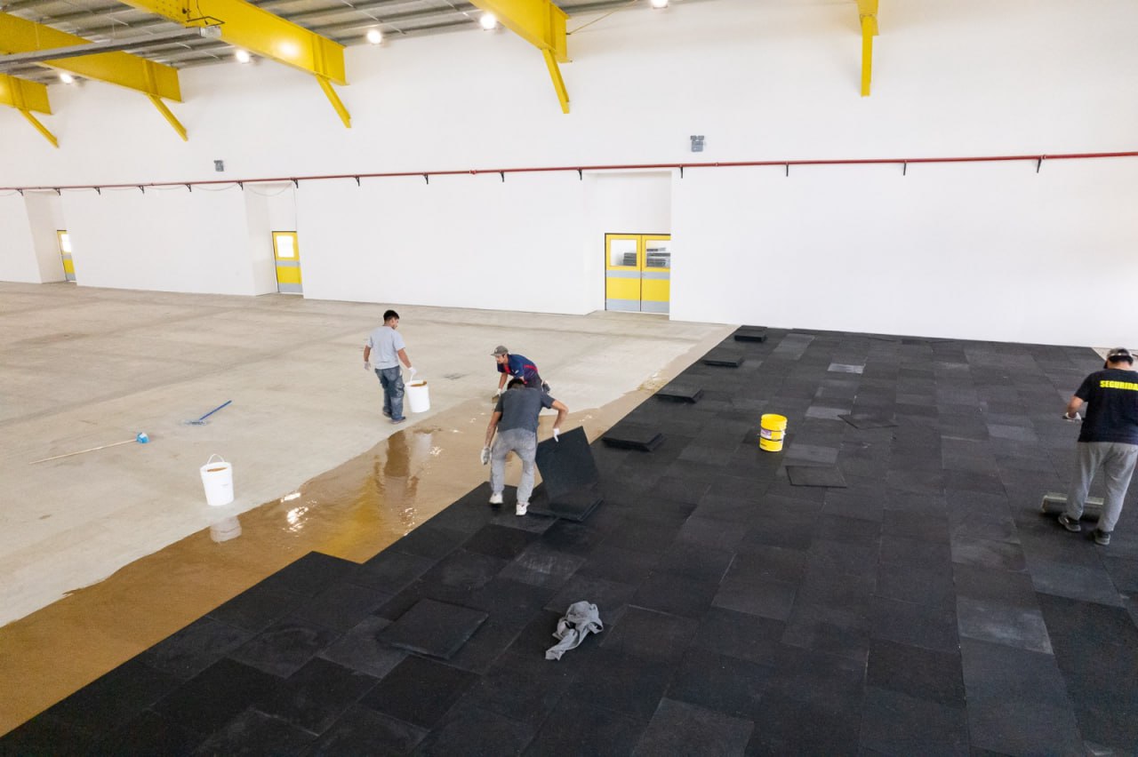 El Ministerio de Obras y Servicios Públicos avanza con los trabajos finales en la Casa del Deporte de Tolhuin, donde la empresa a cargo de la colocación del piso en la cancha de medidas reglamentarias inició con los trabajos previstos.