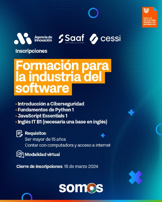 En el marco del convenio suscrito entre la Agencia de Innovación de la Provincia y la Cámara Argentina de la Industria del Software (CESSI) para articular acciones que promuevan el desarrollo de la industria en Tierra del Fuego, se invita participar de los cursos online que se instrumentarán como parte del programa de la cámara “Software as a future”.