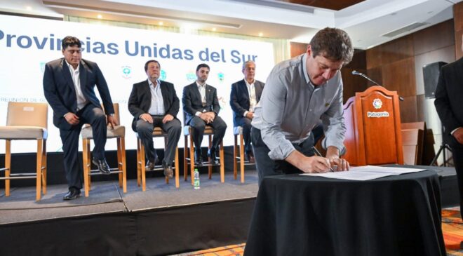 El Gobernador Melella agradeció el acompañamiento de sus pares de la región al sostener que “Malvinas es parte real de nuestro territorio, igual que nuestra Antártida, por eso a veces gastan tanta fuerza en criticar a Gobernadores y lo que deberían hacer es poner esa fuerza para defender en defender la soberanía nacional”.