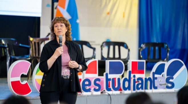 “Los invito hoy a poder alzar sus voces, necesitamos de sus palabras para diseñar una escuela que contenga a todos y a todas, con todos los estudiantes adentro, aprendiendo con calidad”, exhortó.
