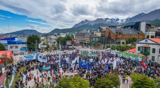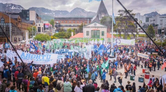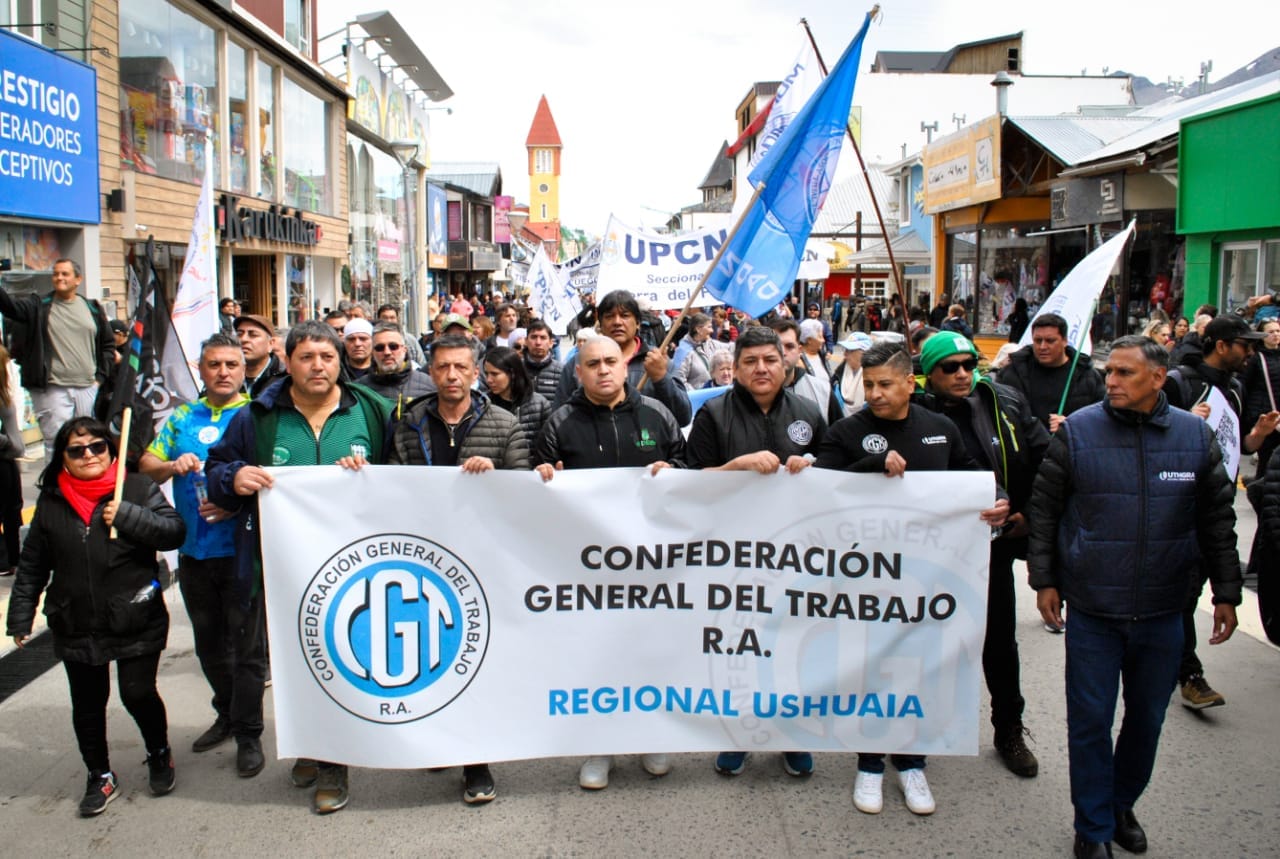 TDF: PARO NACIONAL CONVOCADO POR LA CGT DestacadaNacionalesProvincial By Admin On Ene 24, 2024 Share FacebookTwitterGoogle+WhatsAppEmail Se llevó a cabo con una gran convocatoria y tranquilidad el primer paro nacional en la ciudad de Ushuaia, dispuesto por la CGT. Los trabajadores marcharon por la calle San Martín hacia la Plaza Cívica donde se llevó a cabo el acto central. Share FacebookTwitterGoogle+WhatsAppEmail
