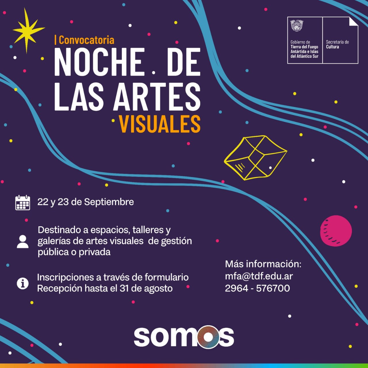 La Secretaría de Cultura de Tierra del Fuego, AIAS a través del Museo Fueguino de Arte ‘Niní Bernardello’, abrió la convocatoria para formar parte de ‘La Noche de las Artes Visuales’ que se desarrollará el 22 y 23 de septiembre en espacios culturales, galerías y talleres artísticos de la provincia.