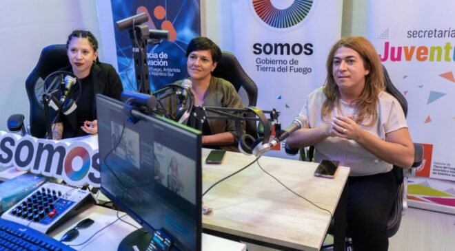 Participaron la Presidenta de la Agencia de Innovación, Analía Cubino, la Secretaria de Gestión, Polos y Fábricas de Talentos, Ema Bejarano, la Ministra de Obras y Servicios Públicos, Gabriela Castillo, el Delegado de Gobierno en Tolhuin, Federico Velázquez y jóvenes de la ciudad.