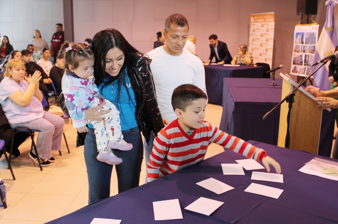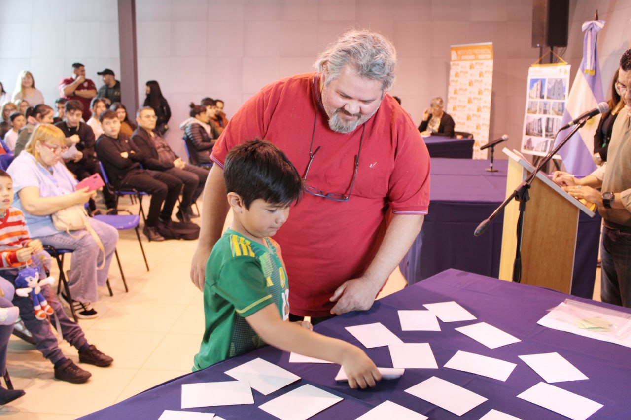 El acto tuvo lugar en el SUM del Instituto Provincial de Vivienda y Hábitat (IPVyH), donde las familias adjudicatarias conocieron cuál será su futuro hogar, cumpliendo con uno de los sueños más esperados, el acceso a una vivienda propia.