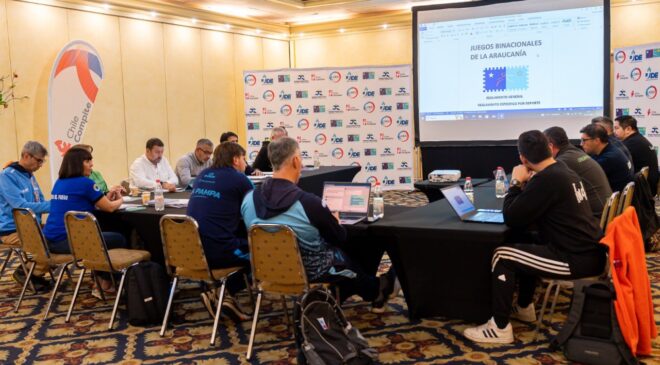Finalmente, Runín explicó que durante el encuentro “se hizo el lanzamiento oficial de los Juegos Binacionales de la Araucanía 2026 que será en la zona de Los Ríos (Chile) con la novedad de que se realizará con una semana de diferencia Para Araucanía y Araucanía”.