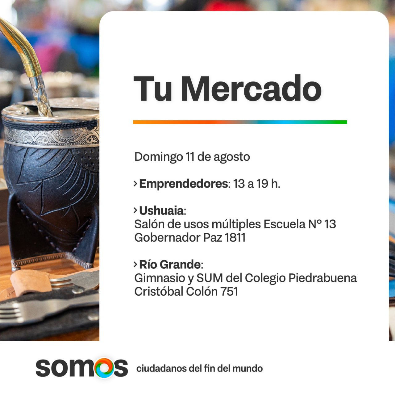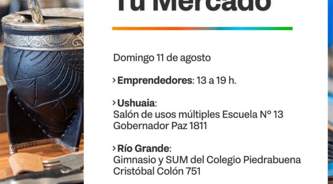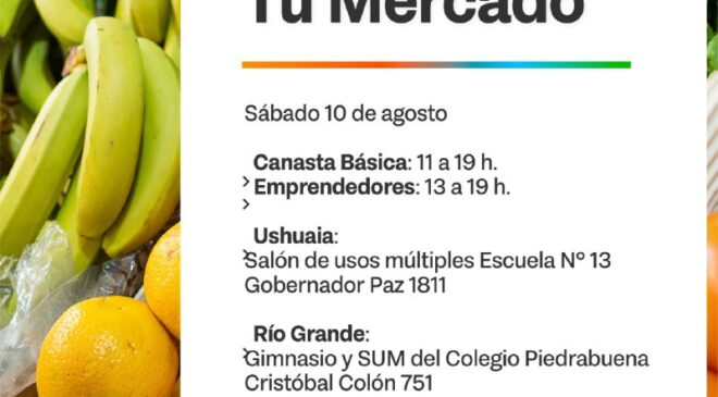Durante el próximo fin de semana se estará realizando una nueva edición de Tu Mercado, la iniciativa que ofrece a las familias de la provincia la posibilidad de acceder a productos de la canasta básica a precios accesibles y acompañar a comerciantes y emprendedores locales. Será este sábado 10 y domingo 11 de agosto en Río Grande y Ushuaia.