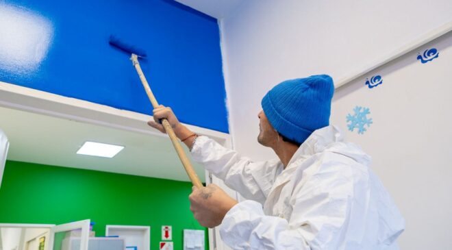 En este sentido, el funcionario comentó que “avanzamos con todas las herramientas que tenemos, con los equipos de trabajo propios, en este caso, con las cooperativas, que acompañan con este tipo de tareas de pintura”.
