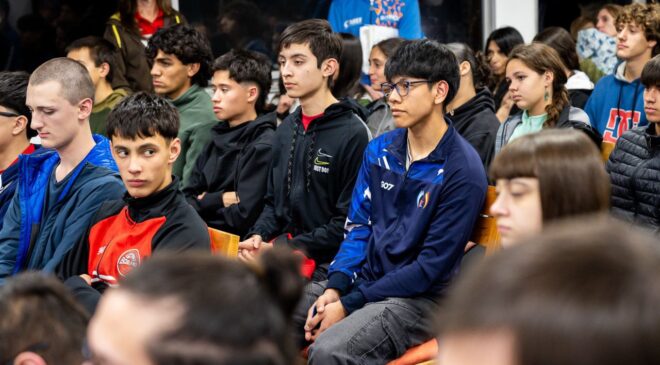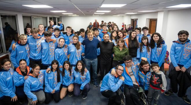 De la presentación en la ciudad norte, estuvo presente el ministro de Educación, Pablo López Silva; la titular de la Agencia de Innovación de la Provincia, Analía Cubino; el secretario de Representación Política, Federico Giménez; la presidenta de la Dirección Provincial de Vialidad, Ileana Zarantonello, deportistas, familias y el equipo de trabajo de la secretaría de Deportes.