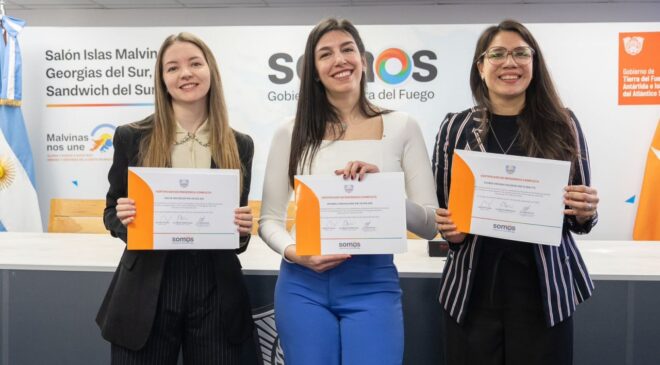 El Ministerio de Salud de Tierra del Fuego entregó certificados a tres médicas que finalizaron su residencia en Medicina General en la provincia. El acto fue encabezado por la vicegobernadora Mónica Urquiza y la ministra de Salud Judit Di Giglio. Se trata de tres profesionales que se sumarán a la planta de profesionales de la salud pública fueguina.