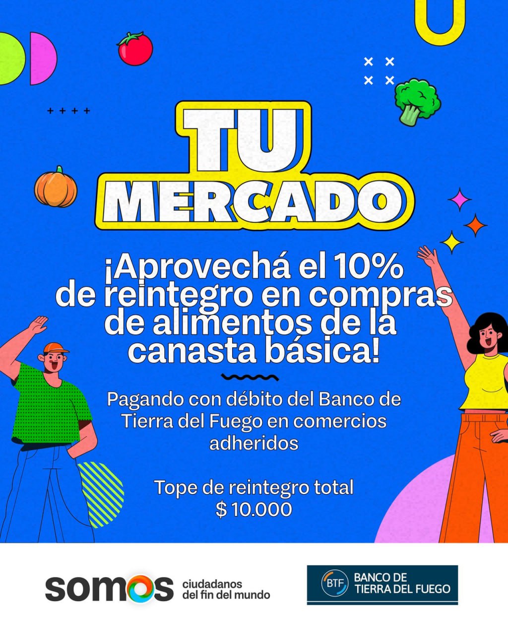 Además, quienes cuenten con tarjeta del Banco de Tierra del Fuego podrán acceder a reintegros del 10% en comercios adheridos, con un tope de $10.000. Este fin de semana, el paseo es en Tu Mercado. Acércate y descubrí todo lo que la comunidad fueguina tiene para ofrecer.