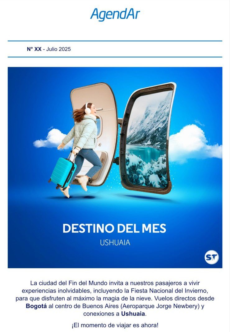 El Instituto Fueguino de Turismo continúa trabajando en el posicionamiento del destino Fin del Mundo, en este caso particular con la temporada invernal y la Fiesta Nacional del Invierno, para acercar esta celebración de hielo y nieve a los mercados prioritarios para nuestra provincia. De este modo se gestionó ante Aerolíneas Argentinas en su sede de Colombia la distinción de “Ushuaia” como «destino destacado para el mes de Julio 2025”.