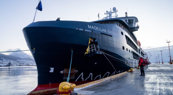 El protagonista de este inicio de temporada fue el Magellan Explorer, un crucero turístico moderno y especialmente diseñado para expediciones en aguas australes. Con capacidad para 100 pasajeros y 60 tripulantes, la embarcación ofrece un servicio de excelencia con comodidades como salón panorámico, comedor, gimnasio, clínica médica y 10 botes Zodiac, que permiten el desembarco en distintos puntos del continente blanco.
