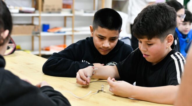 Estas actividades se realizaron en las Escuelas Provinciales N°2, 8, 21, 23, 27, 32 y 44 con estudiantes de 5° y 6° grado, trabajando en talleres con abordaje STEAM, poniendo en juego habilidades propias del pensamiento científico como las de preguntar, desarrollar hipótesis y diseñar experimentos para responder esas preguntas, en base a contenidos de las ciencias y la tecnología (energía, fuerza, trabajo, matriz energética).
