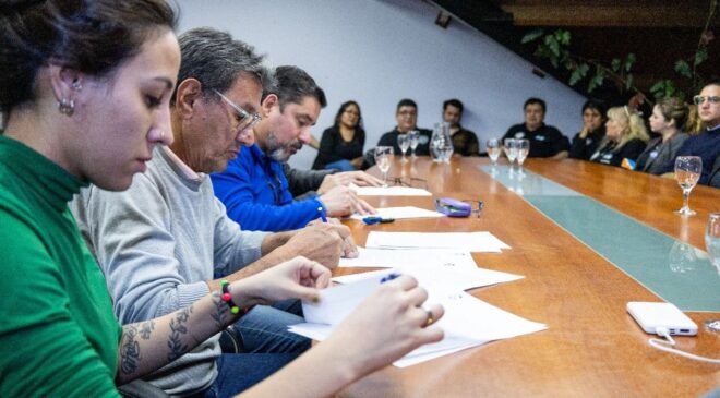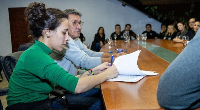 Además, en el acuerdo se plasmó el anuncio del jefe del Ejecutivo municipal de regularizar en forma progresiva a quienes revistan dentro del Programa de Formación Laboral, lo que implica que cobrarán haberes mensuales, contarán con aportes jubilatorios y accederán a una obra social, en lo que el jefe del Ejecutivo municipal definió como “un acto de justicia social”.