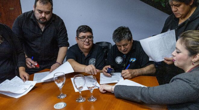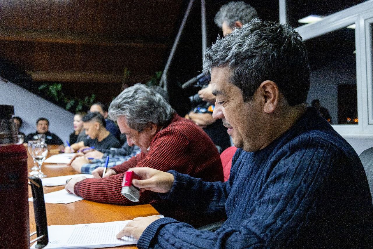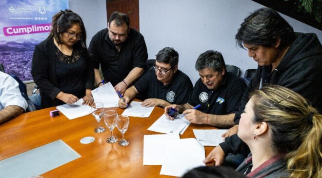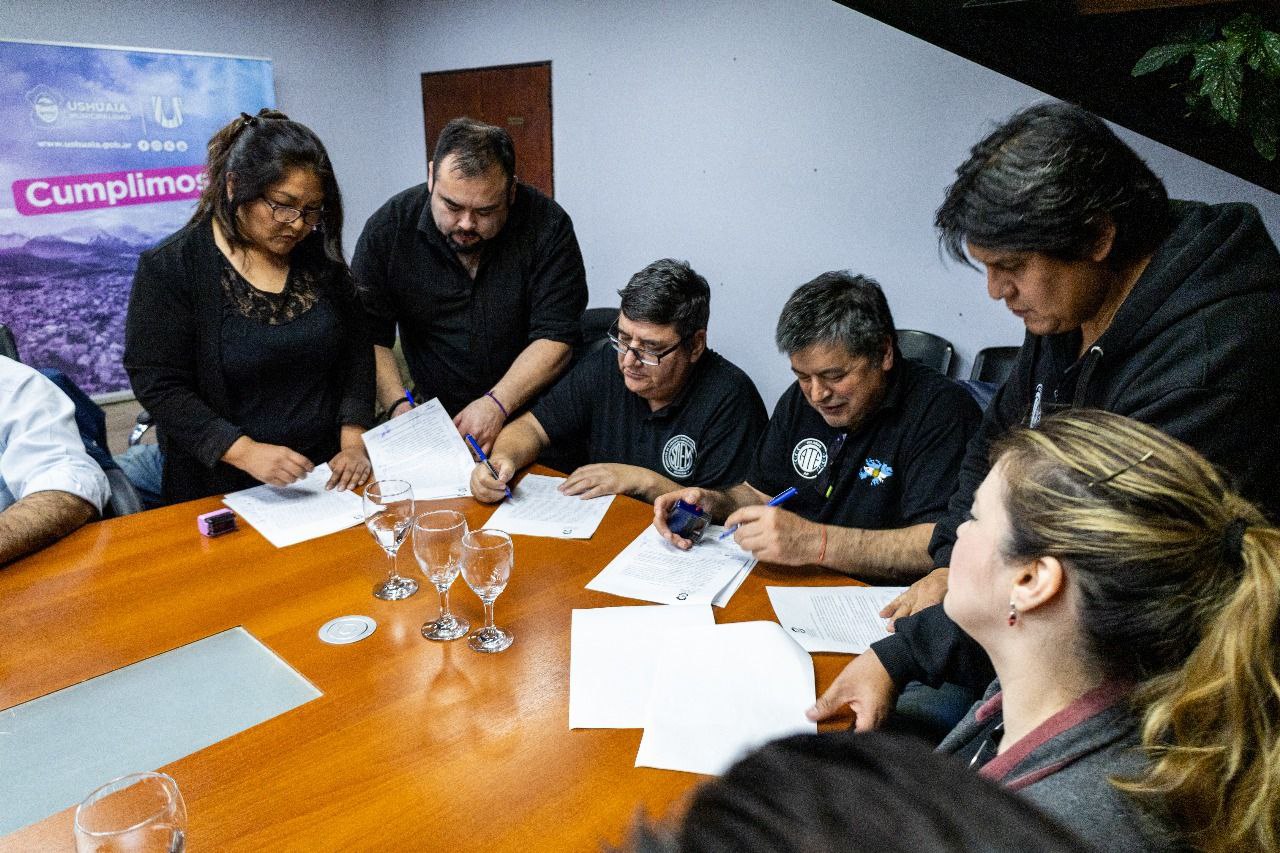 El intendente de Ushuaia, Walter Vuoto, suscribió un acuerdo con los gremios con representación municipal por el cual los trabajadores percibirán durante junio, junto al medio aguinaldo, una suma fija remunerativa y no bonificable de 100 mil pesos. El beneficio alcanzará a la totalidad de los empleados y de las modalidades contractuales laborales.