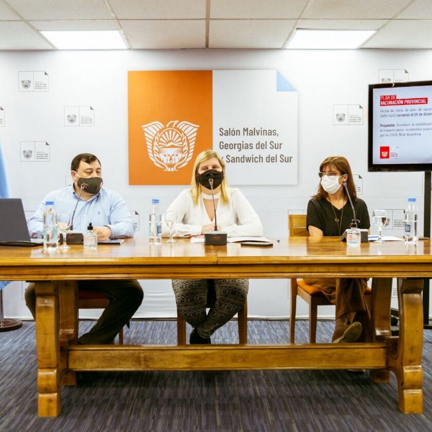 La ministra de Salud, Judit Di Giglio, encabezó -este miércoles- una conferencia en Casa de Gobierno donde se brindó un informe sobre el “Avance de la Campaña de Vacunación contra SARS-CoV2” en la provincia de Tierra del Fuego AIAS.
