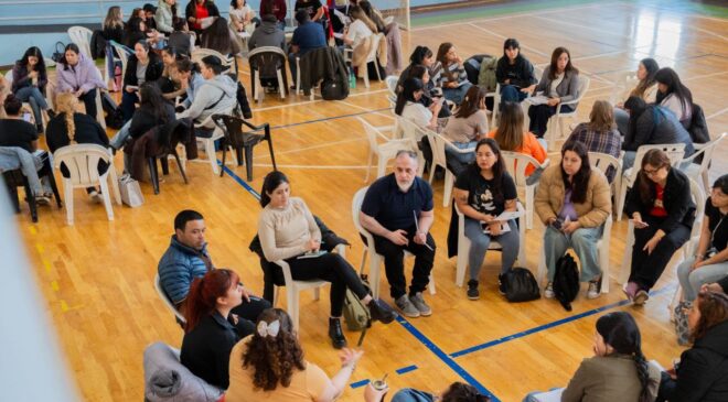 Las y los docentes tanto de Ushuaia, Río Grande y Tolhuin, compartieron con especialistas vinculadas a la didáctica, la enseñanza y el aprendizaje como María José Borsani, de la ciudad de Rosario -Santa Fe-, Gabriela Carnevale de la provincia de Buenos Aires, diversas cuestiones ligadas a la importancia de la planificación didáctica, permitiendo una conversación real entre docentes.