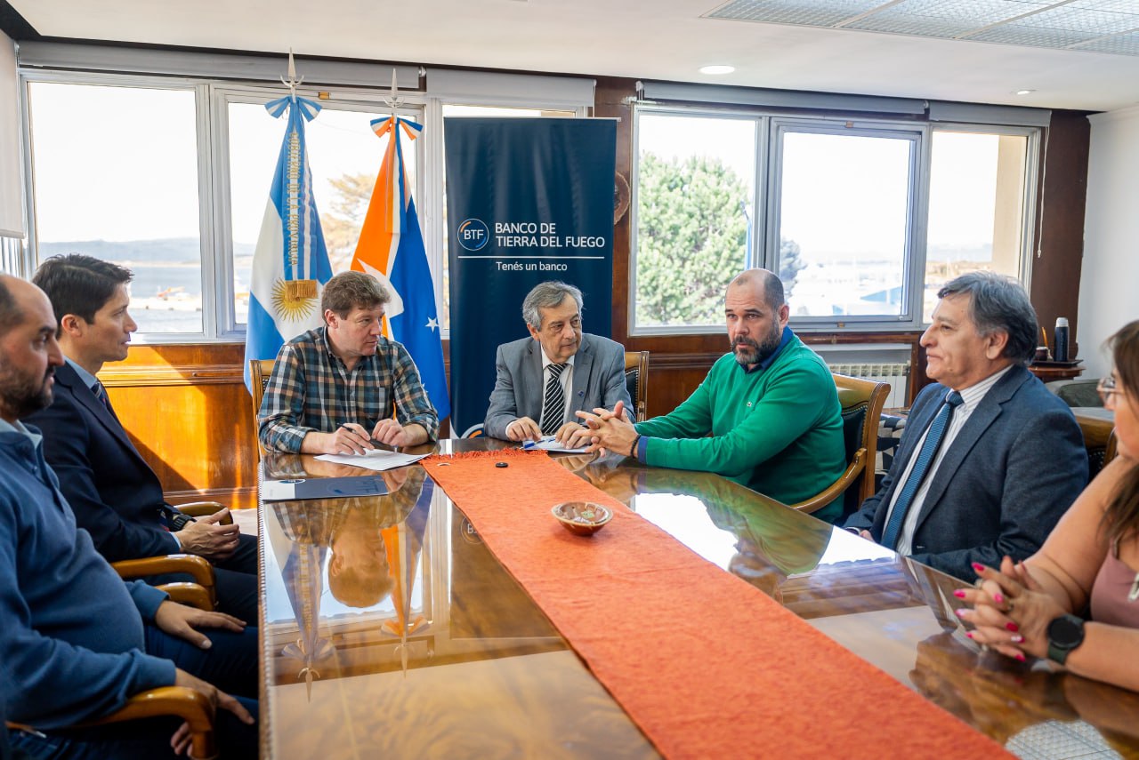 Participaron de la firma del convenio el Gobernador Gustavo Melella, el Ministro Jefe de Gabinete, Agustín Tita, el Ministro de Economía, Francisco Devita, la Ministra de Obras y Servicios Públicos, Gabriela Castillo, el Presidente del BTF, Fabián Musso, el Vicepresidente de esa entidad Roberto Daniel Peralta, el Gerente General del banco, Juan Duarte y el Legislador Federico Greve.