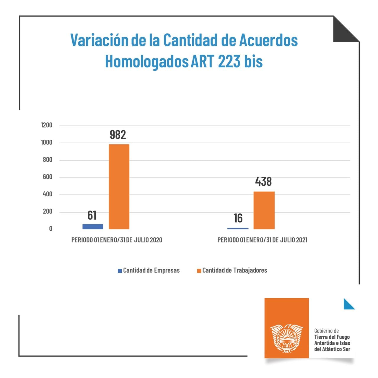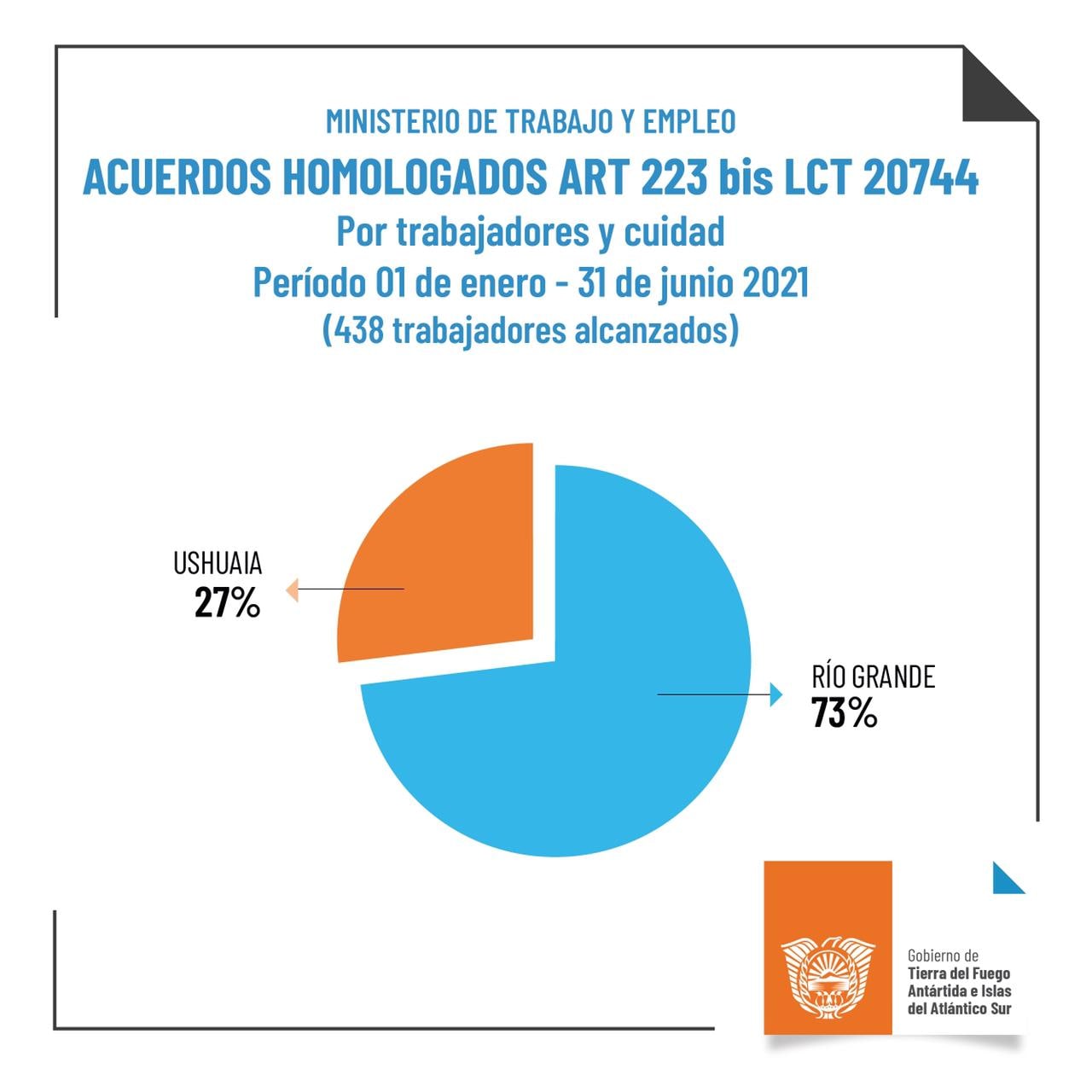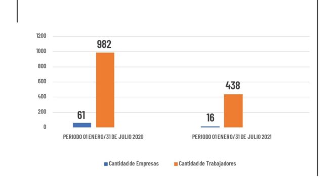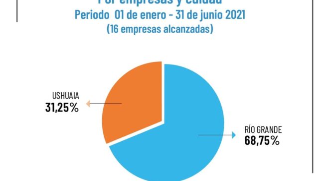 El 69% de empresas que se acogieron a este beneficio corresponden a Río Grande y el 31% a Ushuaia, alcanzando a un total a 438 trabajadores; de los cuales el 73% pertenecen a la ciudad norte y el 27% a la ciudad capital de la provincia. En comparación al primer semestre del 2020, la cantidad de acuerdos homologados alcanzaban a un total de 61 empresas.