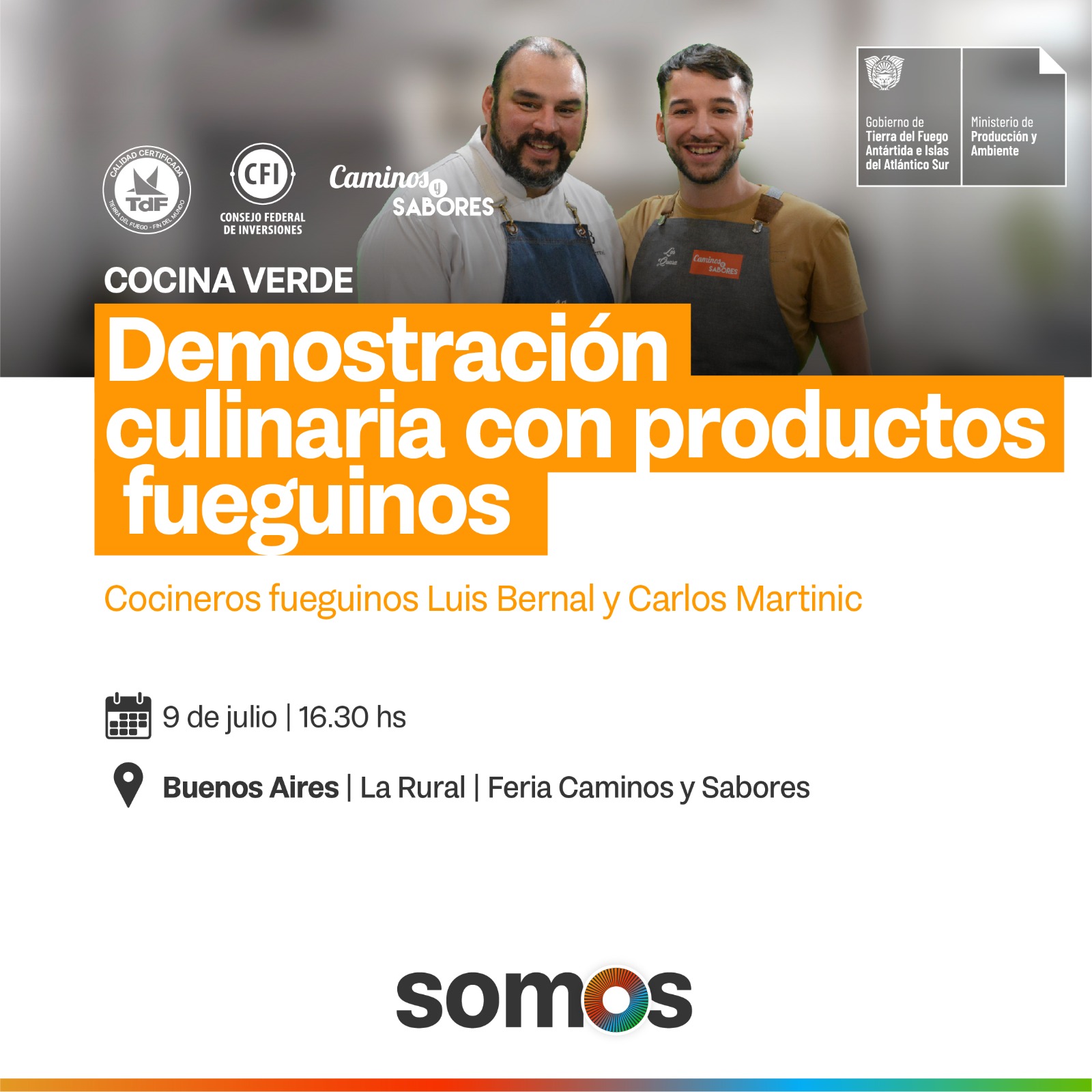 Asimismo, en el espacio de cocina, estarán presentes los reconocidos chefs locales Luis Bernal y Carlos Martinic, que cocinarán con productos fueguinos mostrando las texturas, colores, olores y sabores locales.