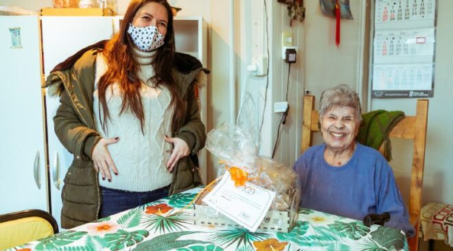 En el marco de la celebración por el Centenario de Río Grande, el Gobierno de la Provincia de Tierra del Fuego AIAS entregó desayunos y presentes a antiguos pobladores y a vecinos y vecinas que cumplen años en la jornada.