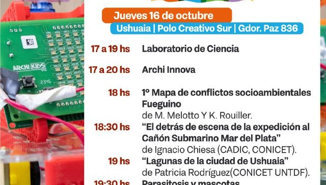Esta segunda edición, organizada entre el CADIC- CONICET, la Secretaría de Ciencia y Tecnología y la UNTDF, propone actividades para toda la comunidad, con una programación simultánea en distintos puntos de la provincia, que incluirán ferias interactivas, charlas abiertas, talleres, visitas guiadas, experiencias de laboratorio abierto, proyecciones audiovisuales y contenidos digitales, priorizando la articulación con escuelas, universidades, centros de investigación y organizaciones sociales.