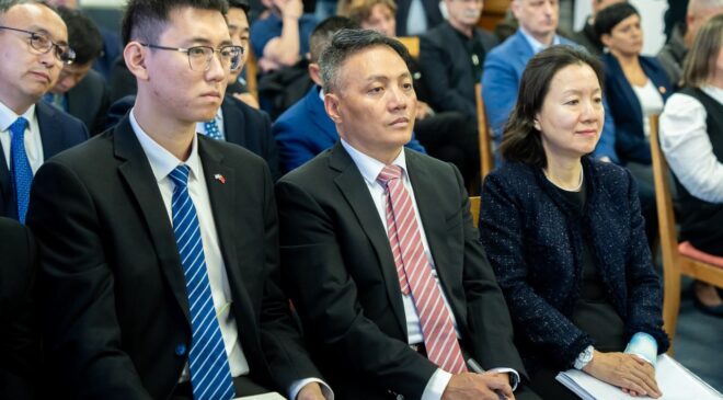En el marco de la visita oficial del Embajador de la República Popular China en Argentina, Wang Wei, y su comitiva diplomática y empresarial, el Gobernador de Tierra del Fuego AIAS, Gustavo Melella, encabezó este martes en Casa de Gobierno una mesa de trabajo junto a equipos técnicos provinciales, representantes del sector privado y autoridades de la Embajada, donde se expusieron los principales ejes estratégicos de desarrollo productivo y las oportunidades de inversión en la provincia.