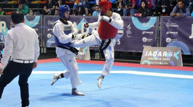 La jornada inició con las primeras presentaciones de la provincia en taekwondo, en el Pabellón A, donde Elías González (-58 kilos) y Santino Molinas (-80 kilos) fueron eliminados en Cuartos de Final a manos de Santiago Estecho (Buenos Aires) y Miguel Tula, respectivamente.