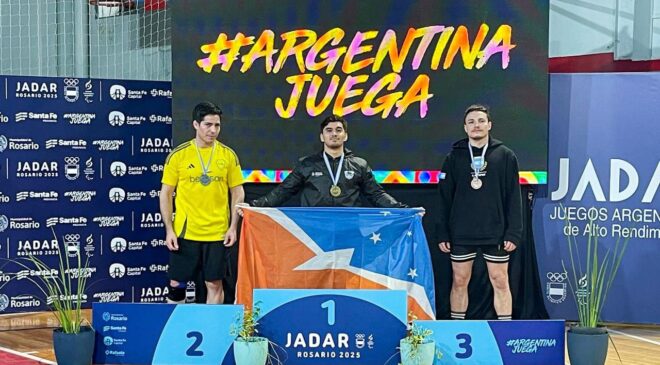 En el cuarto día de los Juegos Argentinos de Alto Rendimiento que se realizan en Rosario, el luchador Horacio Miranda, aportó la tercera presea a la delegación de Tierra del Fuego. Logró la medalla de oro en lucha grecorromana (hasta 77 kilos).