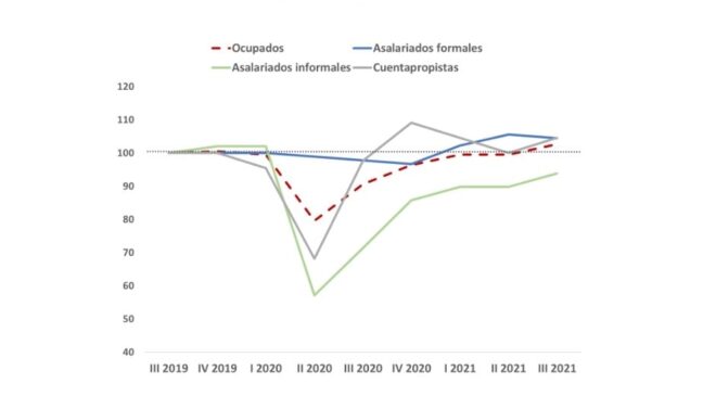 En cuanto a los segmentos poblacionales los grupos que a fines del 2021 continuaban rezagados eran las mujeres, los jóvenes, los mayores y los que cuentan con un bajo nivel educativo.
