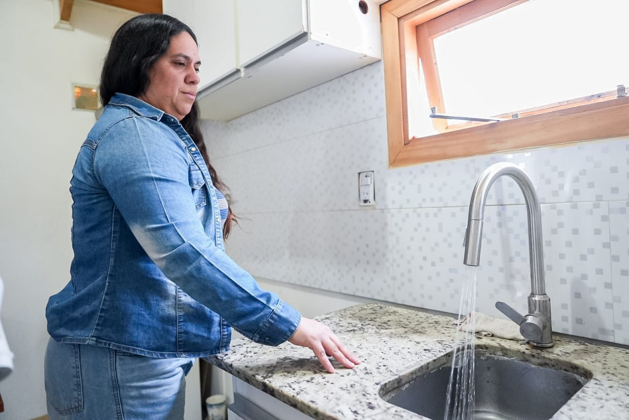 En este marco el presidente de la DPOSS, Cristian Pereyra, acompañado de la Ministra de Obras y Servicios Públicos, Gabriela Castillo y del secretario de Coordinación de Gobierno en Tolhuin, Federico Velazquez visitaron a familias que accedieron recientemente al servicio.