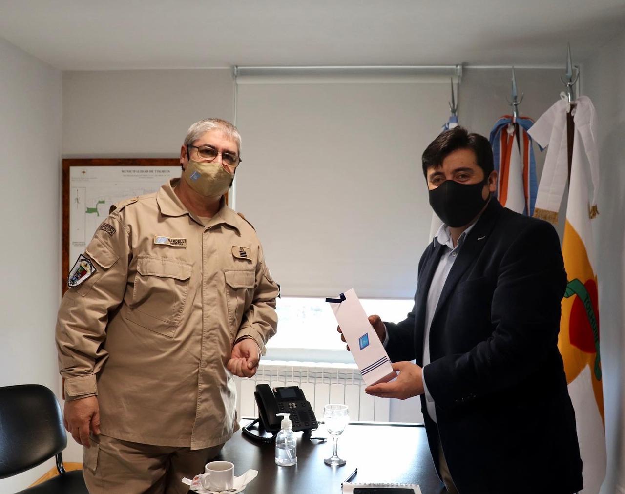 El Intendente de Tolhuin recibió en su despacho al nuevo Jefe de la Prefectura Naval Argentina en Ushuaia e Islas del Atlántico Sur, Prefecto Mayor Miguel Ángel Nardelli con quien mantuvo un encuentro de presentación y puesta en común de la agenda de trabajo.