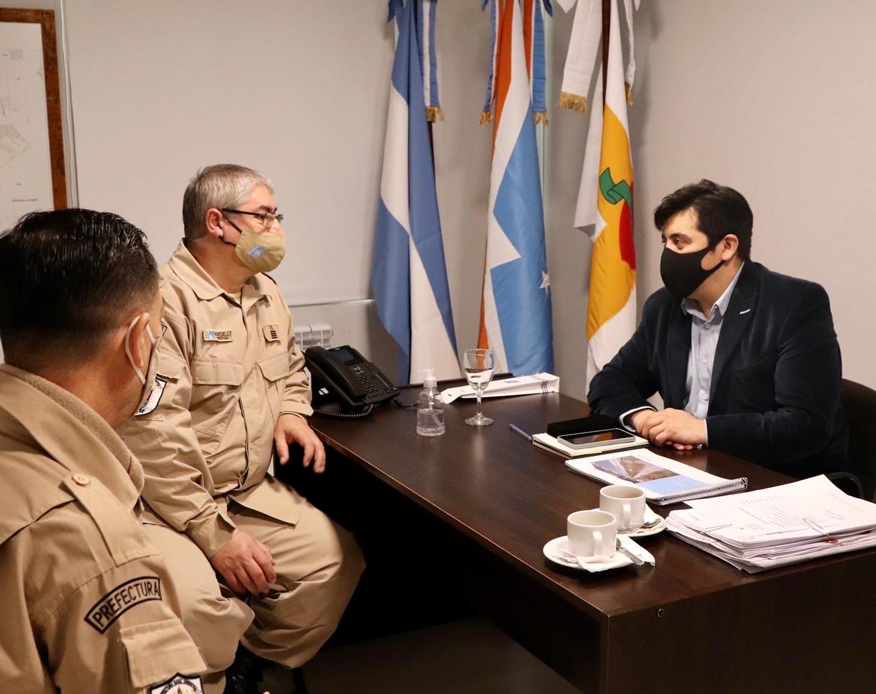 En la reunión se trataron diversos temas, entre ellos, la situación actual de la Prefectura Naval en Tolhuin y su destacamento en la cabecera del Lago Fagnano.