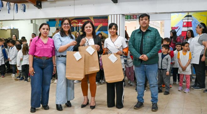El Intendente Daniel Harrington participó del encuentro junto a la Secretaria de Administración y Abordaje Territorial, Valeria Sandoval, y la Coordinadora de Gestión y Desarrollo Urbano, Estela Ruiz Díaz, quienes hicieron llegar en nombre del pueblo de Tolhuin un profundo agradecimiento a todas las personas que, a lo largo de estos 66 años, sostuvieron con vocación y compromiso el crecimiento de la comunidad educativa. Como gesto de acompañamiento, entregaron además una selección de libros destinada a fortalecer la experiencia lectora de niños y niñas.