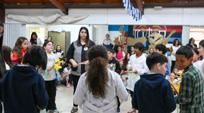 La celebración tuvo como protagonistas a las y los estudiantes, que compartieron distintas presentaciones artísticas durante el acto, y contó también con una obra de títeres que llenó de risas y sorpresa a los presentes, aportando un clima festivo y familiar a la jornada.