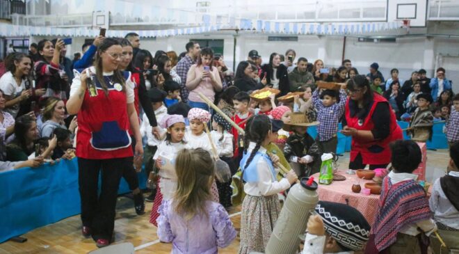 El Municipio de Tolhuin acompañó la Gran Peña organizada por el CENS N°2 Islas Malvinas y el Jardín N°13 Zhioshi, en el marco de la conmemoración de un nuevo aniversario de la Revolución de Mayo. La actividad se llevó a cabo en el SUM del Colegio Trejo Noel, donde vecinos y vecinas se reunieron para celebrar esta fecha patria con una jornada colmada de música, danza y tradición.