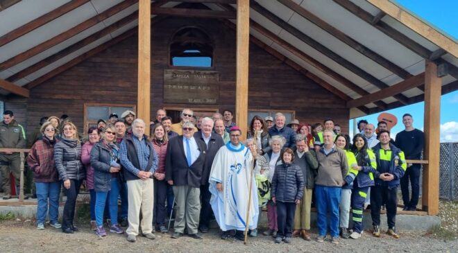 El Intendente de Tolhuin Daniel Harrington fue invitado por el Alcalde de Timaukel, Luis Barría Andrade, a participar en la misa de acción de gracias en la renovada Capilla Santa Teresa de Los Andes de Pampa Guanaco.