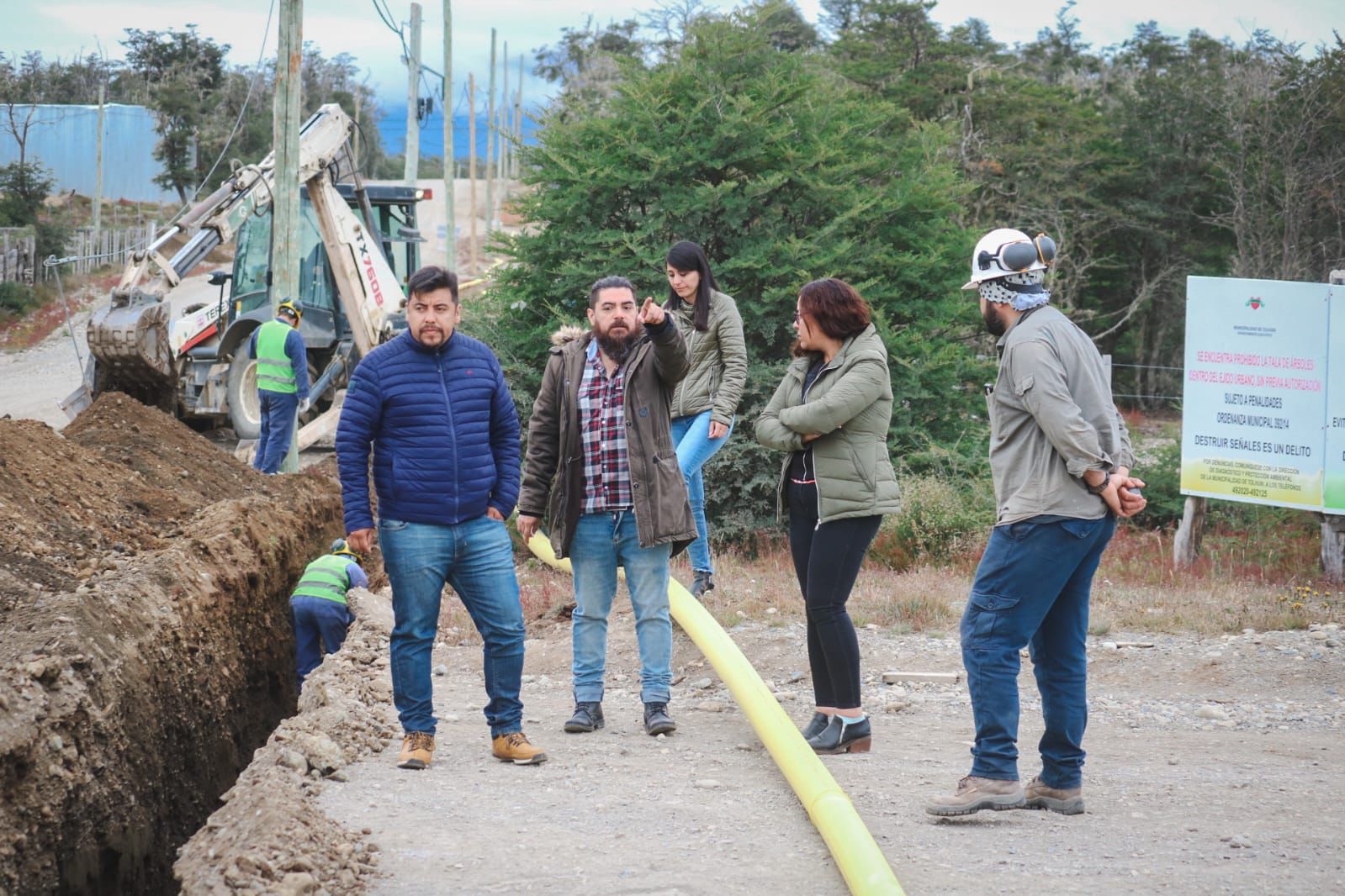 El Intendente Daniel Harrington recorrió la obra para el nuevo tendido de gas junto a la Secretaria de Gobierno Ana Paula Cejas, el Secretario de Planificación y Desarrollo Urbano, Arq. Hugo Gómez, la Coordinadora Administrativa Valeria Sandoval y la Coordinadora de Asuntos Institucionales Gimena Contreras.