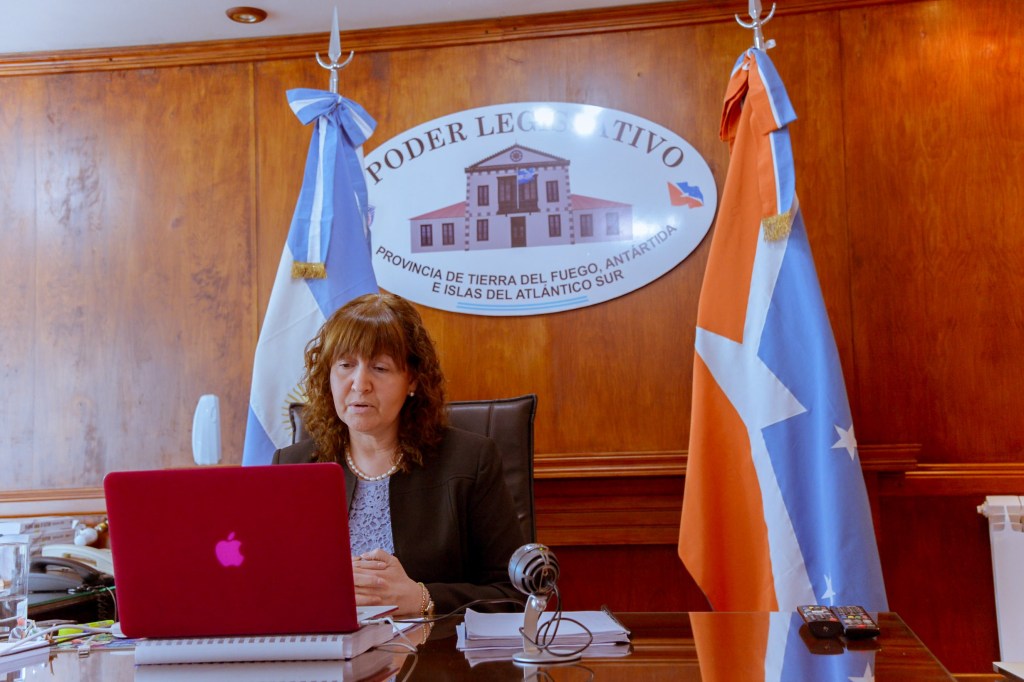 Durante la exposición, la Vicegobernadora destacó diversas actividades que la provincia de Tierra del Fuego ofrece como por ejemplo industria electrónica, textil, industria del conocimiento, turismo, logística antártica como así también lo que representa la cuestión Malvinas.