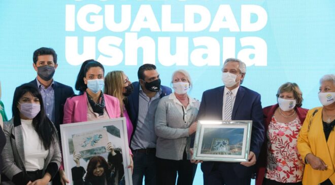 Por su parte, el intendente Walter Vuoto destacó que “el anuncio de la residencia del adulto mayor es un anhelo histórico en la ciudad, de nuestros adultos mayores, ya que es una necesidad permanente que tenemos los ushuaienses desde hace 30 años. Además, la Municipalidad va a continuar con un programa que fue exitoso en el gobierno de Cristina, Conectar Igualdad, y se va a volver a fabricar en Tierra del Fuego computadoras, por decisión del Presidente. La Patagonia en los años de Macri fue muy castigada. Cristina dejó una provincia con pleno empleo y Macri la dejó con 38% de pobreza”.