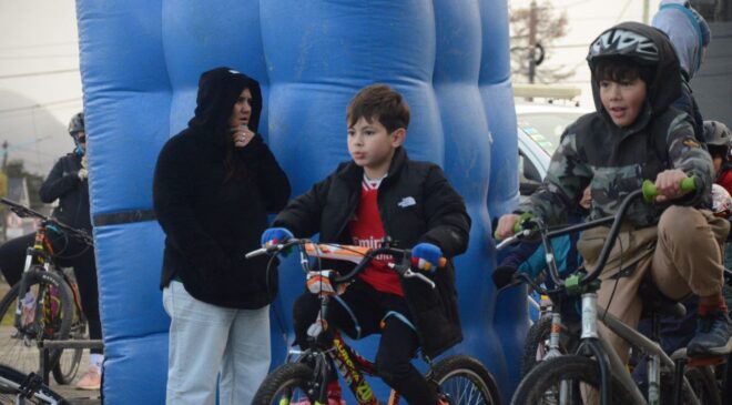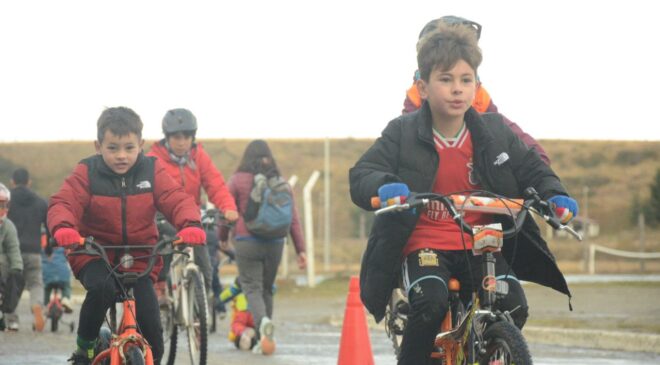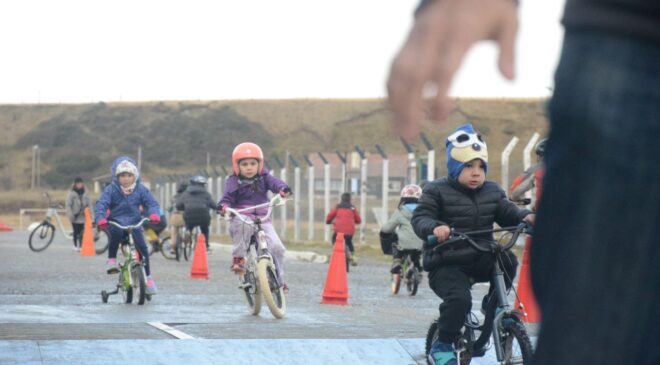 En el marco de las actividades por el 43° aniversario de la Gesta de Malvinas, el IMD llevó adelante una bicicleteada pensada para las distintas edades, donde los más pequeños realizaron vueltas recreativas en un circuito especialmente preparado sobre la calle Jainen.