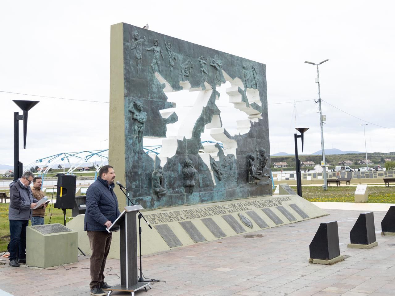Estuvieron presentes acompañando a Soneira el secretario de Asuntos Malvinas del Municipio, Dante Asili; el secretario de Relaciones Parlamentarias y Articulación Política, Omar Becerra; la secretaria de Cultura y Educación, Belén Molina; el concejal Nicolás Pelloli e integrantes del Centro de Excombatientes de Malvinas en Ushuaia, entre otras autoridades.